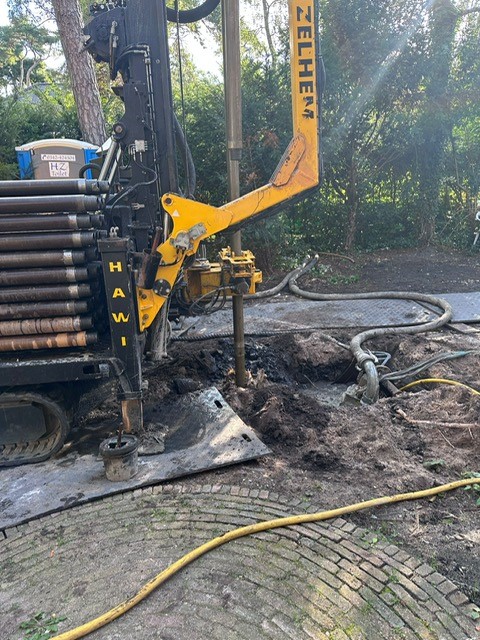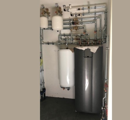 De ‘blowerdoor’ test bewees dat het huis nu zo tochtvrij mogelijk is, zodat je het energiezuinig kunt verwarmen. Maar hoe krijg je dit huis gásloos behaaglijk warm? Een gespecialiseerd adviesbureau berekende welke capaciteit de warmte-installatie minimaal moet hebben. Diverse typen all-electric warmtepompen konden de benodigde capaciteit leveren, maar de grondgebonden water-warmtepomp was het meest optimaal. Deze warmtepomp haalt zijn energie uit de constante bodemtemperatuur van ongeveer 10-12 graden. Na twee diepe boringen in de voortuin, ging een flexibele dubbelgevouwen leiding de grond in en de twee uiteinden daarvan zijn verbonden met de warmtepomp in huis.