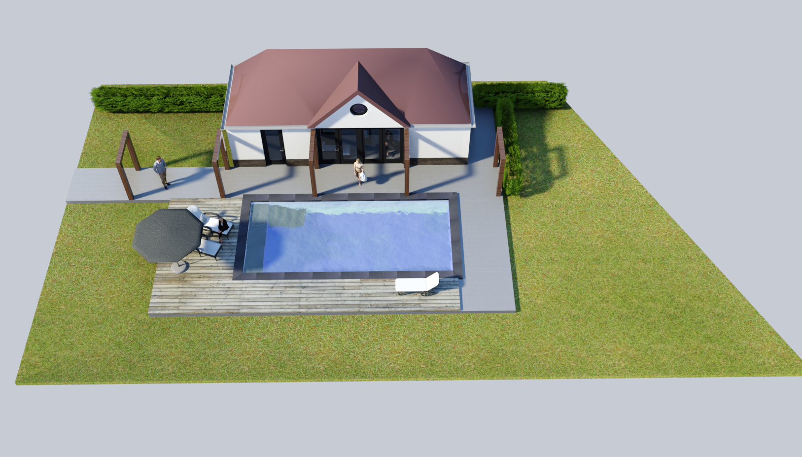 Samen met een zwembadbouwer bepaalden we de exacte uitvoering van het zwembad. Hoveniersbedrijf Robert van der Weiden uit Heemstede maakt de achtertuin eerst gereed, daarna kan het zwembad en poolhouse gebouwd worden. Als dat klaar is leggen zij de achtertuin ook opnieuw aan.